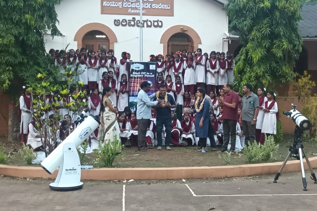 In collaboration with the Himalayan Space Centre, the Shrii Chami Vidhyavahini Trust proudly organized an immersive Astronomy Learning Experience at Shri Bhadrakali School, Gokarna. Over two engaging evenings, students explored the mysteries of the universe - learning about the Solar System, observing Saturn, Jupiter, Venus, and the Moon through telescopes, and identifying constellations with the help of the Stellarium app. They also got hands-on experience with different telescope parts and types, making science come alive under the night sky. The sessions were designed to ignite curiosity and wonder among students from both Kannada and English medium schools, transforming classrooms into gateways to the stars. This initiative reflects our ongoing mission to spark scientific thinking and inspire the next generation of explorers, dreamers, and innovators.