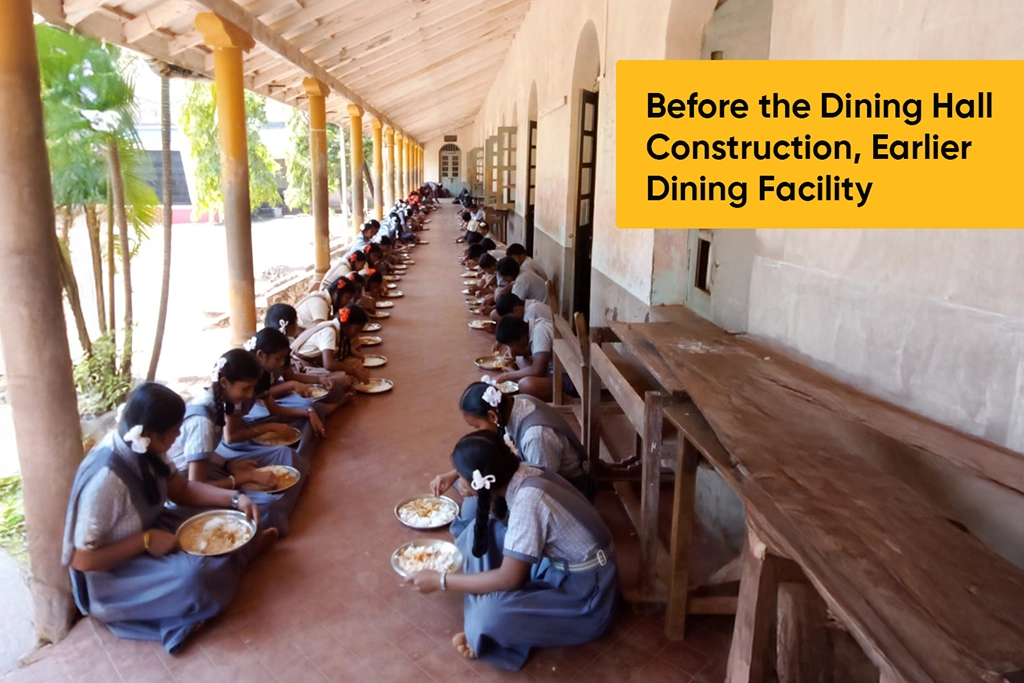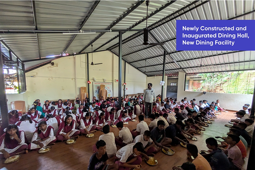 A new Bhojana Shala (Dining Hall) has been constructed at Shri Bhadrakali School, Gokarna, providing students with a clean, comfortable, and dedicated space to enjoy their mid-day meals. The facility is equipped with a proper hand wash area, ensuring hygiene and good health practices among children. To support smooth and efficient meal preparation, the Shrii Chami Vidhyavahini Trust has also provided the necessary stoves, cooking utensils, and kitchen equipment. This initiative not only improves the dining experience but also fosters a sense of community and care within the school environment—ensuring that every child enjoys a healthy meal in a dignified setting.