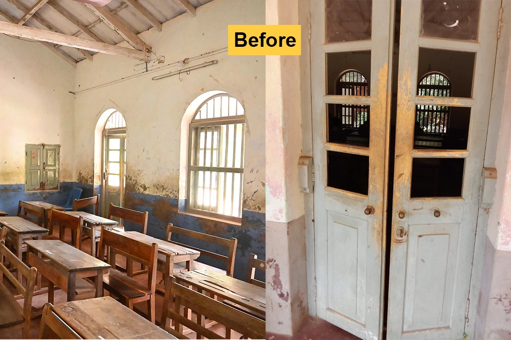 As part of our ongoing commitment to improving learning environments, the Shrii Chami Vidhyavahini Trust undertook a complete renovation of Shri Bhadrakali School, Gokarna. The entire school building—both inside and out—received a fresh coat of paint, bringing new life and vibrancy to the classrooms and corridors. Broken doors and windows were replaced to ensure safety and comfort, while brand-new desks were provided to enhance the learning experience for students. The washrooms were upgraded with new sinks and improved sanitation facilities, and better lighting arrangements were installed to create a bright, welcoming atmosphere. This initiative reflects our belief that every child deserves to learn in a clean, safe, and inspiring environment—one that encourages learning, creativity, and pride in their school.